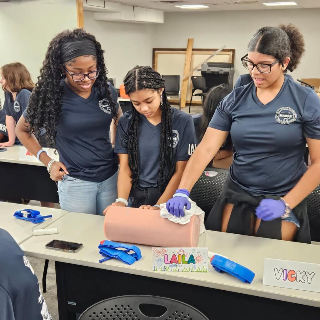 On Thursday, the campers took a field trip to the new Top Golf in Canton where they enjoyed learning a new activity and playing some lawn games. Campers grabbed a sweet treat from Lazy Bear Creamery in Dorchester and then attended a first-aid course on handling traumatic wounds provided by Stop the Bleed organization, led by MAWLE camp leader Boston Police Officer Sarah Palermo and Boston Police Sergeant Detective John Burrows.